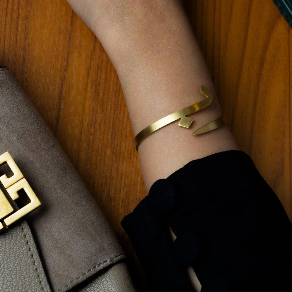 إسورة جذابة ومتميزة بتصميم الطراز العربي الأصيل وجمال الخط العربي الذي يُزين يديك ويمنحك شكلاً أنيقاً واعتزازاً بجمال لغتنا العربية