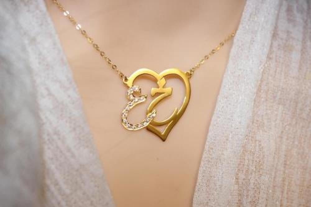 قلادة حرفين بقلب واحد