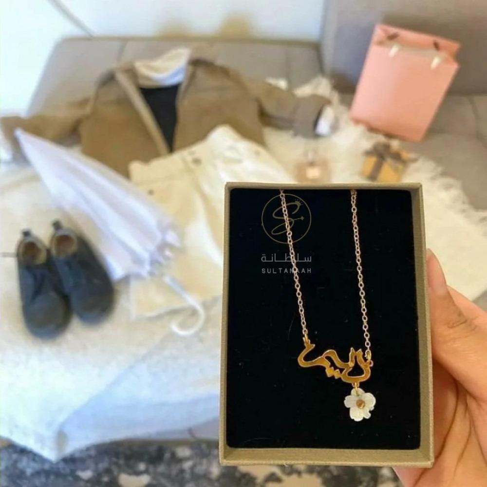 اجمل سلسال لطفلتك يحمل اسمها الجميل مع الوردة البيضاء طفلتك هي الاروع دوماً بسلسال راقٍ بإسمها كشخة طفلتك مع متجر سلطانة