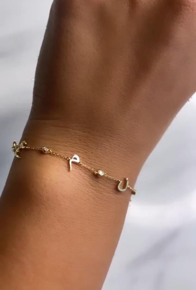 اسواره ناعمه فخمة بالاحرف حسب طلبكمطليه بالذهب عيار 21تتوفر باللونين الذهبي و الفضي تاتي بتغليف جميل من متجر سلطانة تصميم الاحرف حسب طلبك