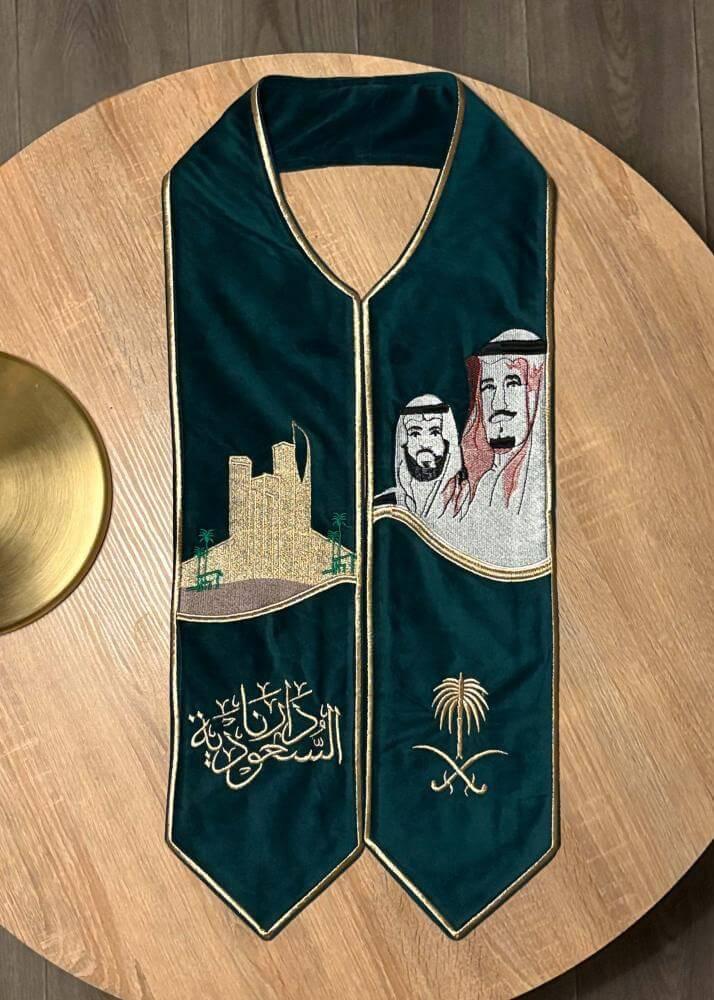 اليوم الوطني السعودي- لحظة فريدة تمثلتاريخ ووحدة وفخر وطني. وفي هذا اليوم الخاص،نقدم لك وشاح اليوم الوطني، لتظهربأسلوب استثنائي يعبر عن حبك لوطنك.مصمم بعناية فائقة ليجسدجمال اللحظة وروح الفخر الوطني.