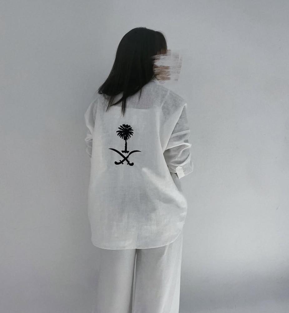 قميص سيفين ونخلة بتطريز اسود فاخر