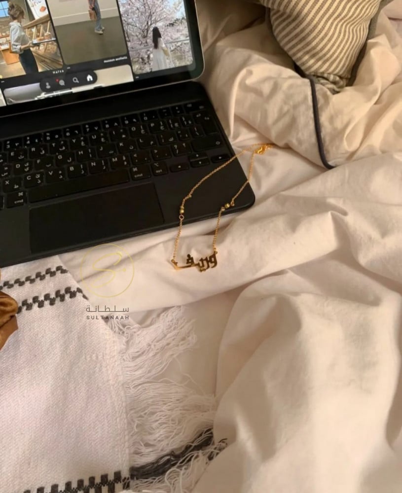 سلسال الفصوص بتصميم راقي يتم تخصيص الاسم حسب الطلب يتوفر باللونين الفضي والذهبي يمكن كتابة الاسم (عربي + إنجليزي)مطلي بالذهب عيار 21 قيراط ضمان اللون سنتين من سلطانة