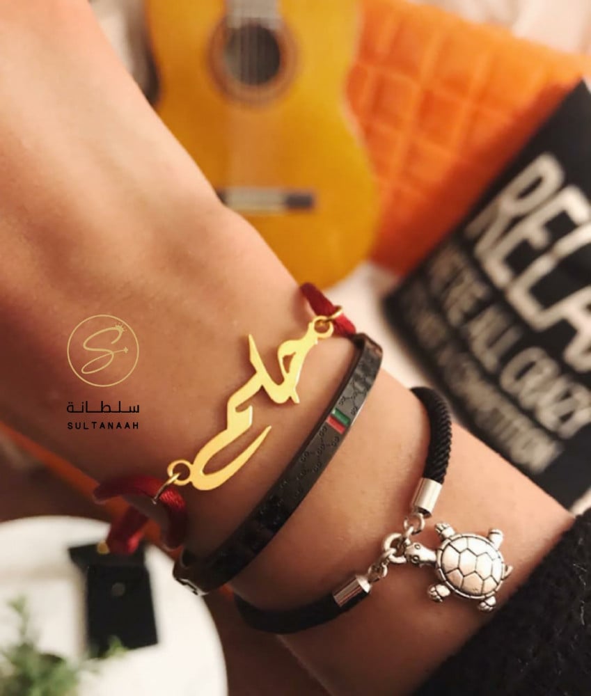 اسواره الخيط الاحمر الجميلة تالقي باجمل طله باسوارة تحمل اسمك الجميلتفاصيل المنتج : يتم تصميم الاسوارة حسب طلبك نصمم بالاسم حسب طلبك يتوفر باللونين الفضي والذهبي ضمان اللون سنتين من سلطانة ياتي إليك بلعبة فخمة وكيس هدايا