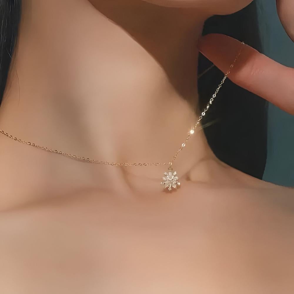 قلادة "همسة الأناقة المتلألئة" بتصميمها الرقيق وسحرها اللامع، تزيّن الرقبة بنعومة فائقة وتمنحك لمسة من الفخامة الهادئة. تتدلّى منها ندفه ثلج براقة تشع نوراً مع كل حركة، مصنوعة بعناية من الفضة الخالصة ومطلية بالذهب لإطلالة تليق بذوقك الرفيع. قطعة مثالية لكل من تبحث عن التميّز في التفاصيل.