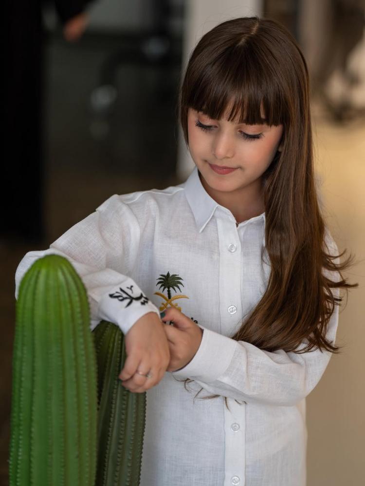 قميص خامة فاخرة وأنيققميص رسمي قماش شبه واقف بلون أبيضمع تطريز سيفين ونخلة كبير بالخلف حدود ۲۰ سم + صغير منالأمام حدود ۷ سممتوفر جميع المقاساتمناسب للكبار و الصغارتطريز الاسم حسب الطلب