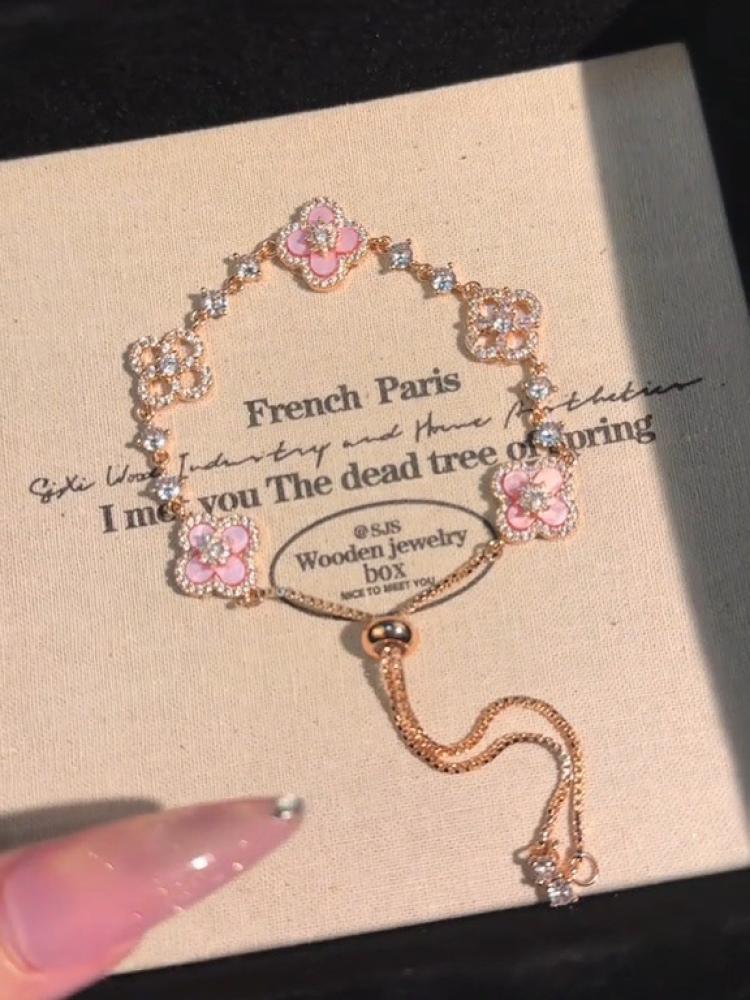 مصنوعة بدقة عالية ، مزينة بزهور ناعمة بلون وردي هادئ و لون فضي لامع تتوسطها فصوص لامعة تضيف لمسة فاخرة وبراقة على معصمك.