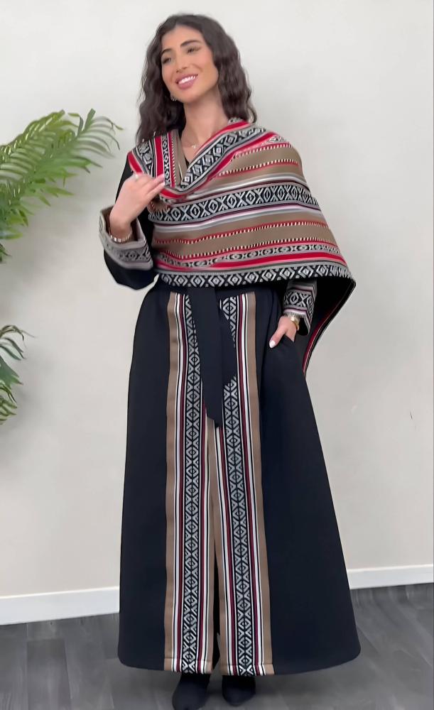 استمتعي بالدفء والأناقة في هذا البشت الشتوي المصنوع من جوخ عالي الجودة، والمطرز بنقوش السدو التراثية التي تعكس الفخامة العربية.المقاس حسب مقاس العبايةالالوان :الاسود مع القبعةالاسود مع الشال